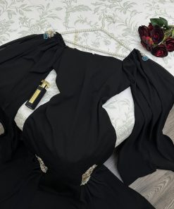 الخامه كريب. ليكرا استرتش + تطريز فخم +كلوش شيفون جورجيت