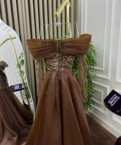 فستان سهرة أنيق بلون بني جذاب يناسب السهرات والمناسبات الخاصة. يتميز بتصميم عصري وقماش فاخر يمنحك إطلالة أنثوية راقية. خيار مثالي لحفلات المساء والمناسبات الرسمية لمن تبحث عن الأناقة والتميز.